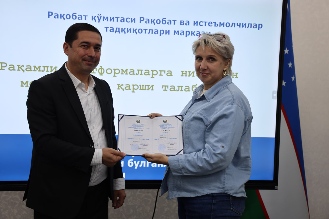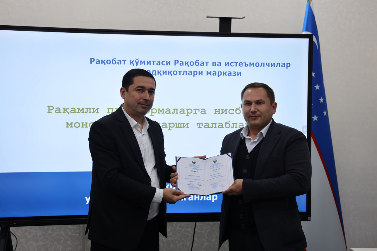 Рақобат қўмитаси ҳузуридаги Рақобат сиёсати ва истеъмолчилар ҳуқуқлари тадқиқотлари маркази томонидан ташкил этилган “Монополияга қарши комплаенс” бўйича махсус ўқув курси ташкил етилди.