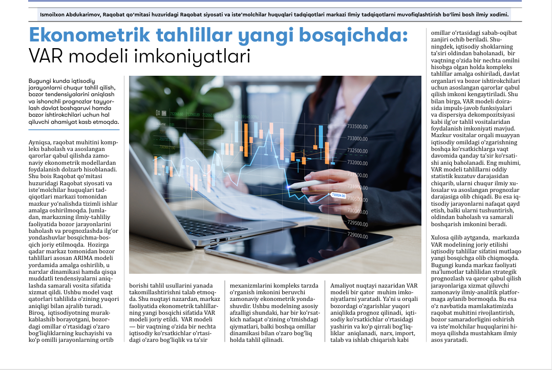 “Ички бозорда парранда гўшти маҳсулотининг нарх барқарорлиги ва келгуси тенденцияларини эконометрик моделлар орқали баҳолаш”