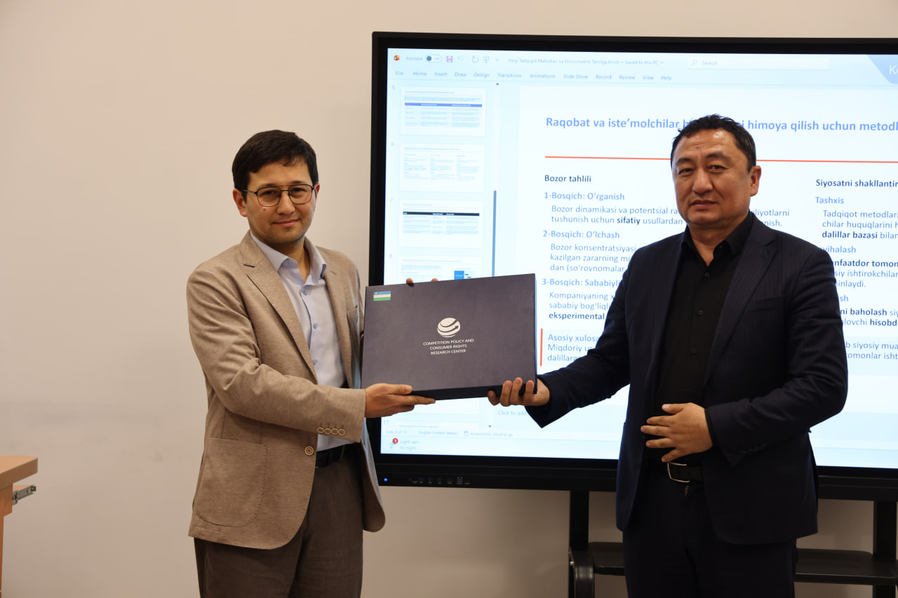 Рақобат қўмитаси ҳузуридаги Рақобат сиёсати ва истеъмолчилар ҳуқуқлари тадқиқотлари маркази ҳамда Халқаро Вестминстер Университети ўртасидаги ҳамкорлик доирасида Қўмита ходимлари учун «Илмий тадқиқот методлари ва эконометрик таҳлил» мавзусида амалий семинар ташкил этилди.