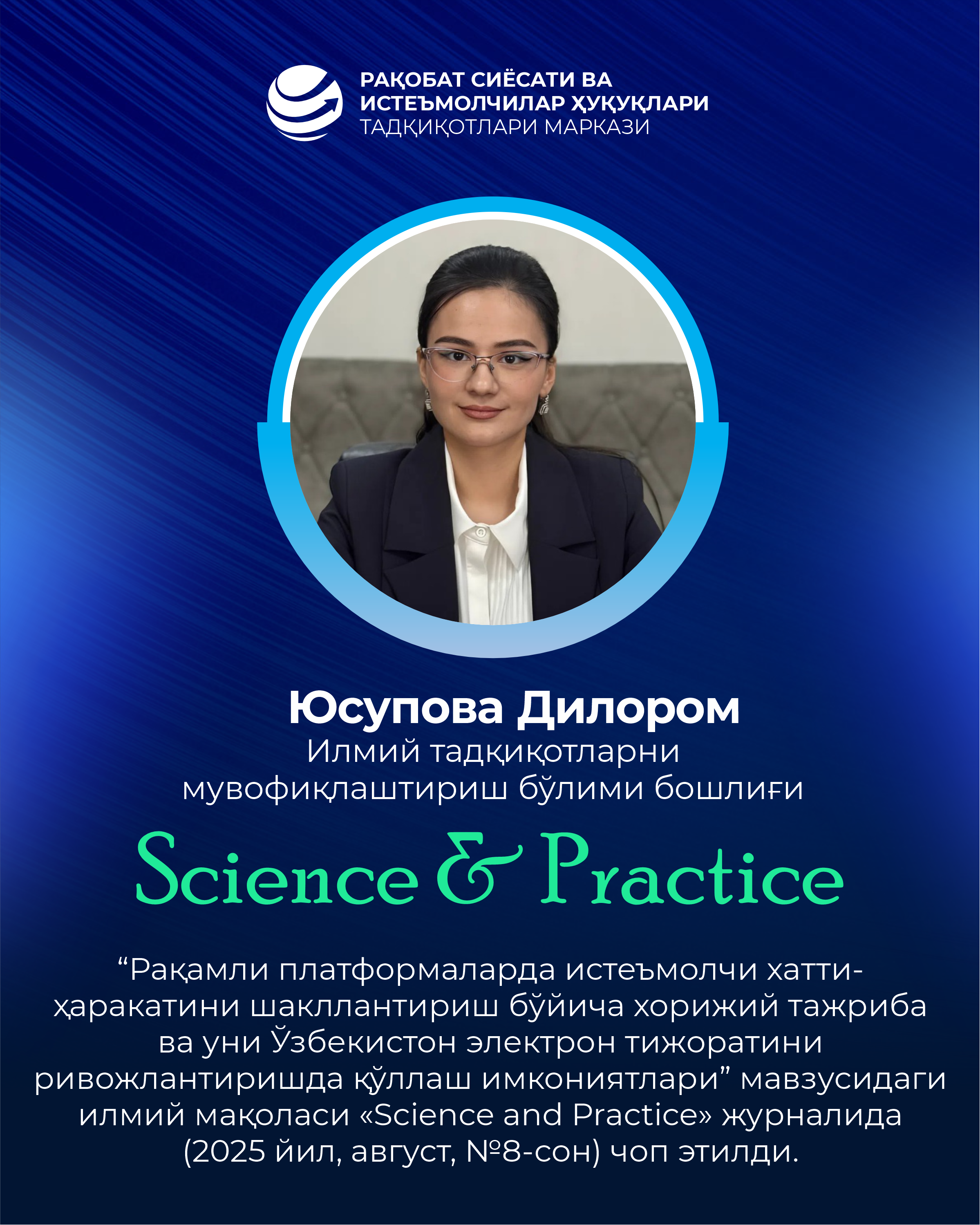 Competition Policy and Consumer Rights Research Center under Competition Promotion and Consumer Protection Committee of the Republic of Uzbekistan was established by the decision of the Cabinet of Ministers No. 303/10 dated 21 July 2023.