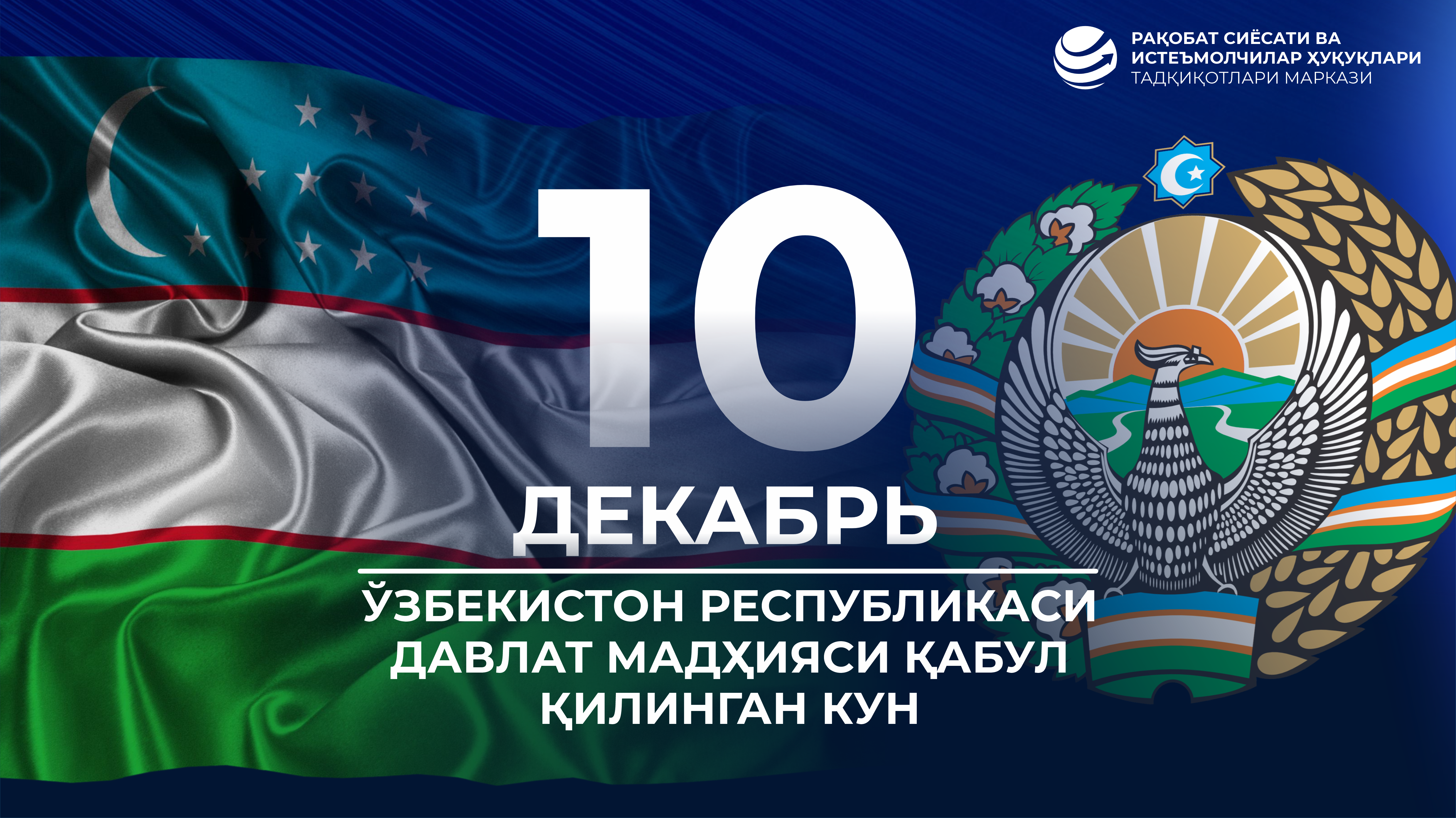 The National Anthem of the Republic of Uzbekistan, adopted on December 10, 1992, is one of the sacred symbols of our country’s sovereignty and national identity. According to current legislation, showing respect for the anthem is the patriotic duty of every citizen. Whenever the anthem is performed, feelings of love, loyalty, and pride for our Motherland grow even stronger in every heart, and each of us feels our national identity and unity even more deeply. May the National Anthem of Uzbekistan, as the noble voice of our free and aspiring nation, continue to spread the spirit of peace, harmony, and progress throughout the world! Competition Policy and Consumer Rights Research Center|Telegram |facebook|instagram|